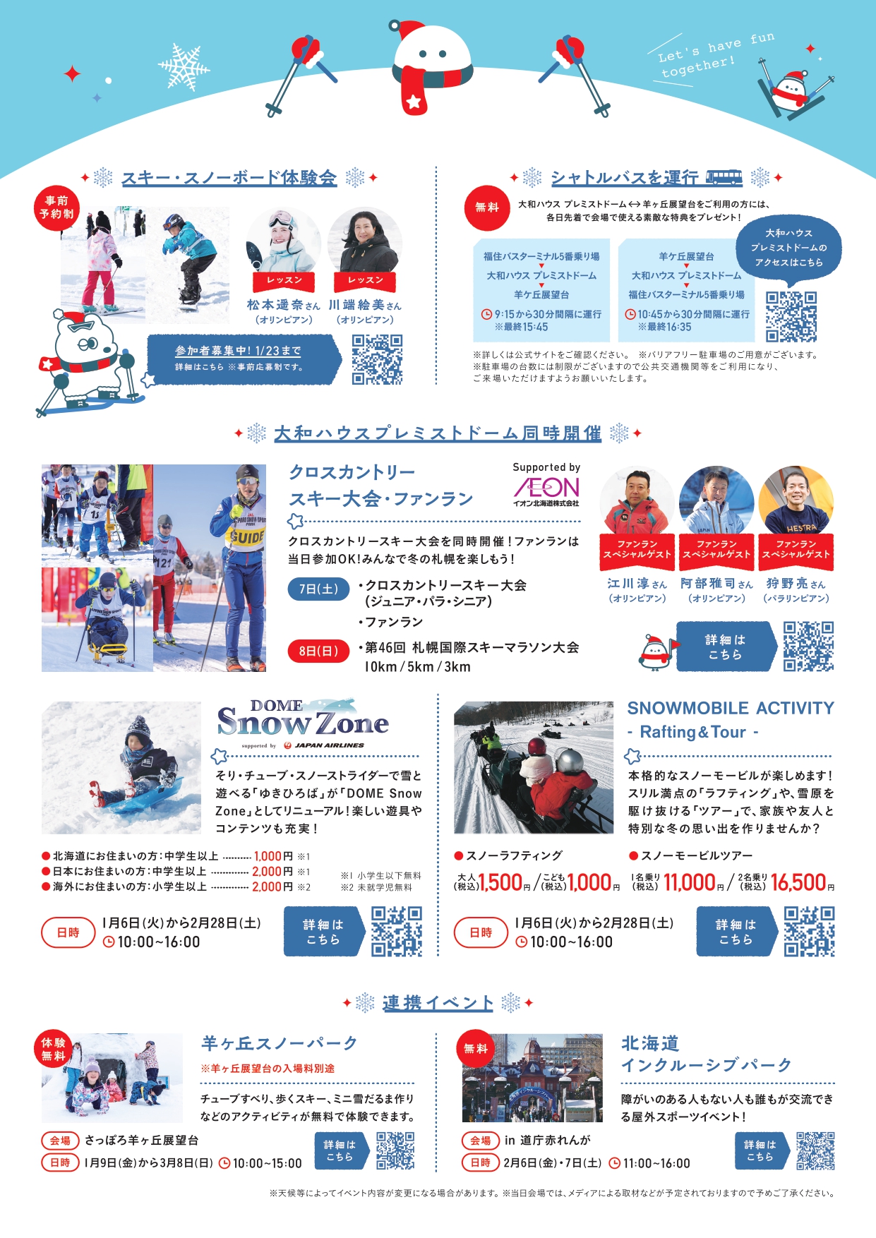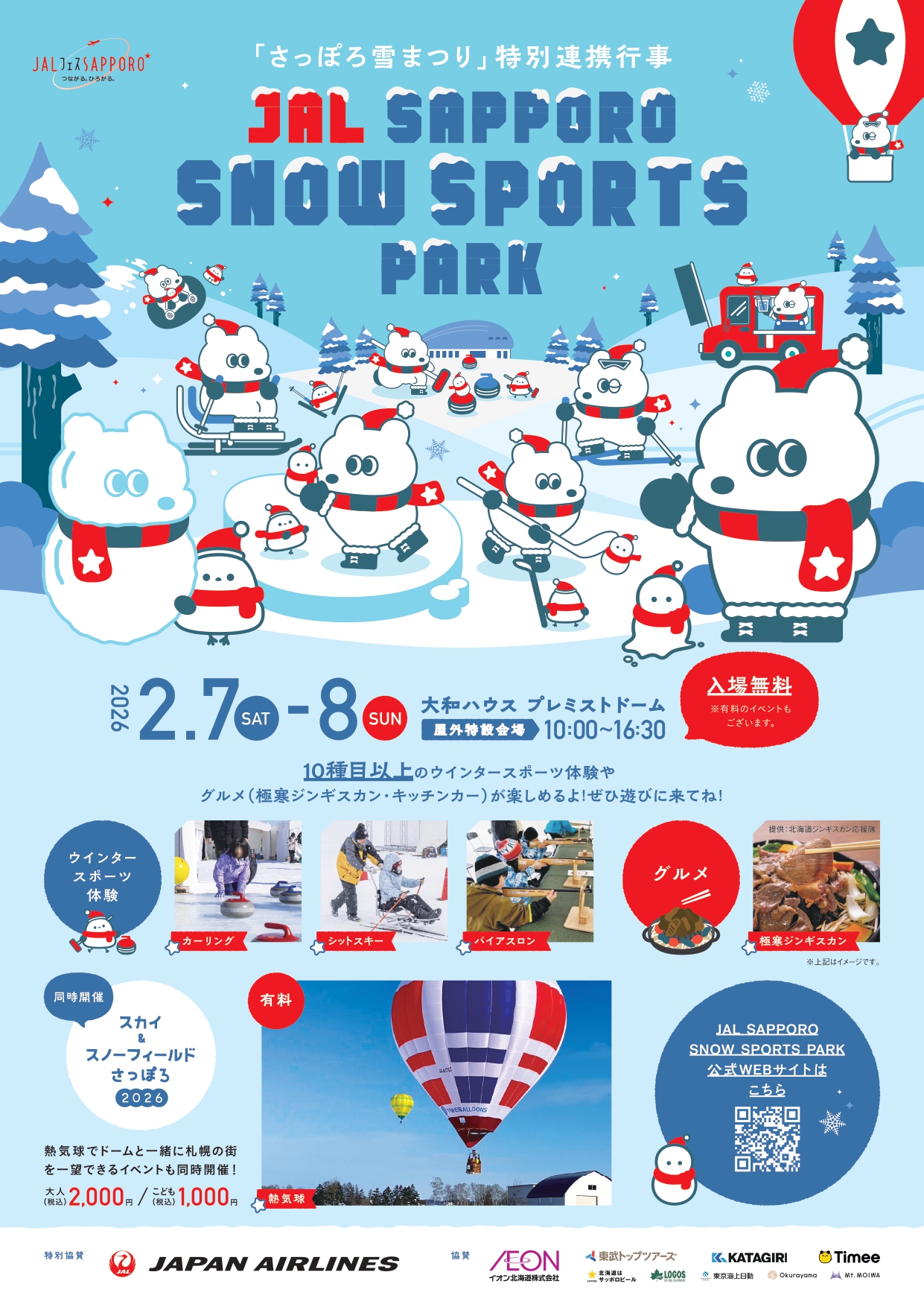 カーリングやバイアスロンなど10種類以上のウィンタースポーツが体験できるほか、屋外で食べる「極寒ジンギスカン」、北海道・札幌のグルメを集めたキッチンカーも登場!
