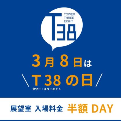 3月8日を「T38(タワー・スリーエイト)の日」として、当日に限り、一般入場料金が半額になります。JR札幌駅直結の地上38階・高さ160mのJRタワー展望室から、札幌の360度見渡せる眺望はおすすめです!窓際の自由席、カフェもあり、観光でなくても、ゆっくりぼんやり過せるおすすめスポット。