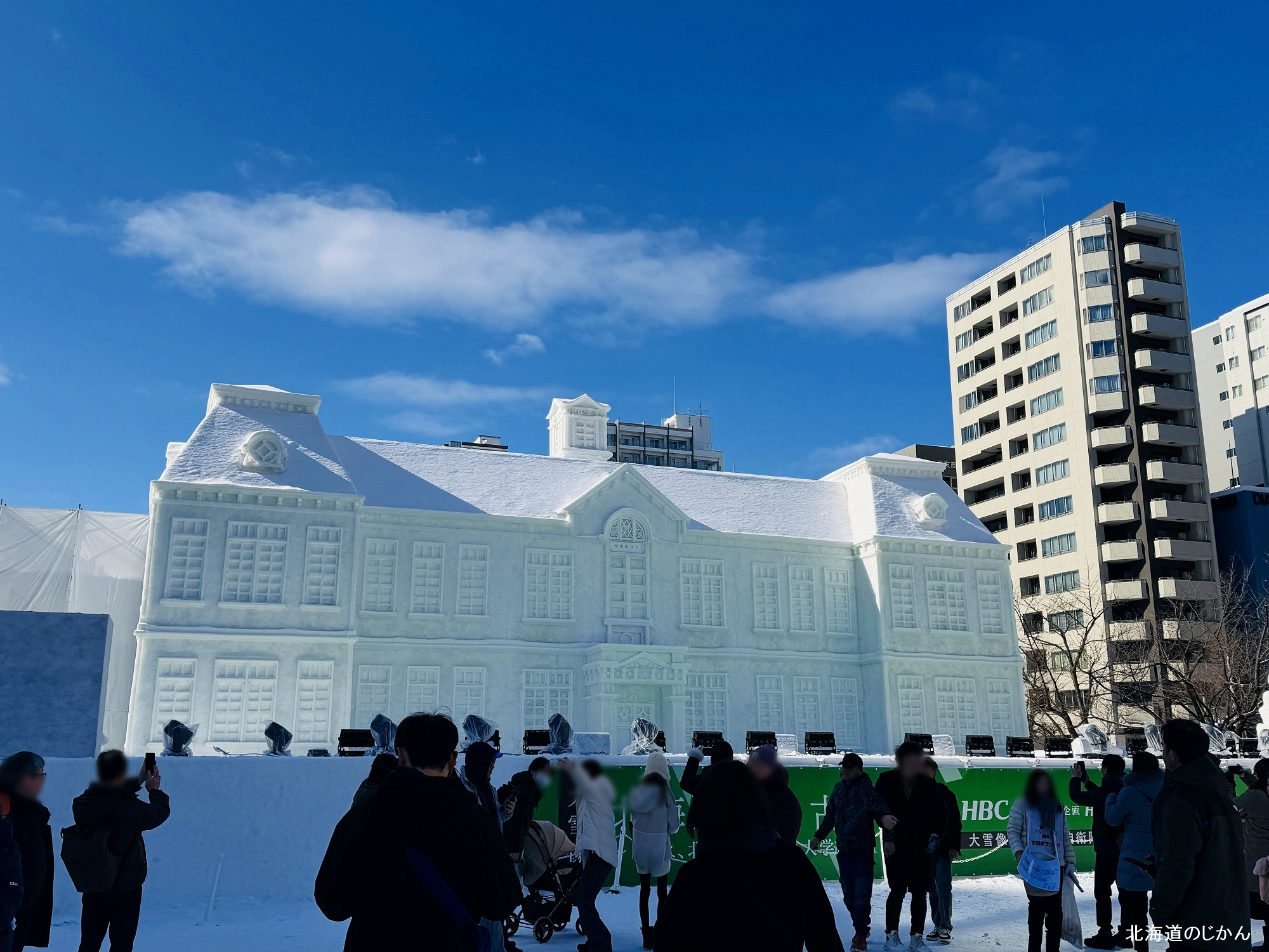 2026年は、大通会場では136基、つどーむ会場では14基、すすきの会場では60基制作。合計で210基程度の雪氷像が制作される予定です。