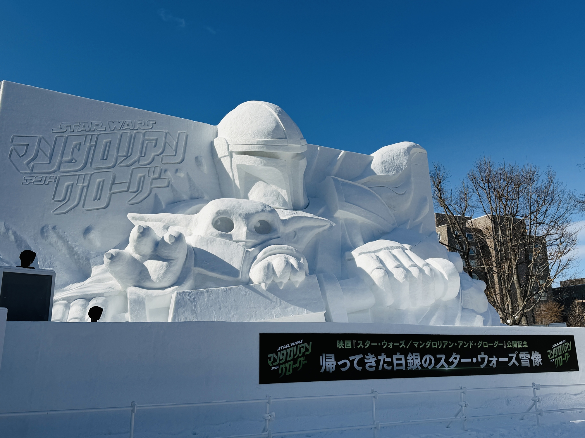・10丁目(UHBファミリーランド):映画『スター・ウォーズ/マンダロリアン・アンド・グローグー』公開記念 帰ってきた白銀のスター・ウォーズ雪像 - プロジェクションマッピング(夜のライトアップ)